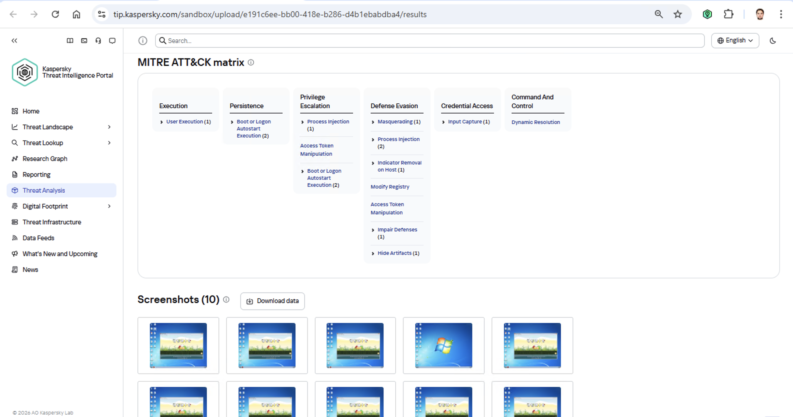يعد تحديد التكتيكات والأساليب والإجراءات (TTPs) أثناء التحليل الديناميكي أمرًا مباشرًا نسبيًا من حيث التنفيذ؛ بل في الواقع، ظلت هذه الوظيفة ركيزة أساسية في كل بيئة معزولة حديثة لفترة طويلة. وبطبيعة الحال، تحدد جميع البيئات المعزولة لدينا أيضًا التكتيكات والأساليب والإجراءات أثناء التحليل الديناميكي لعينات البرامج الضارة: