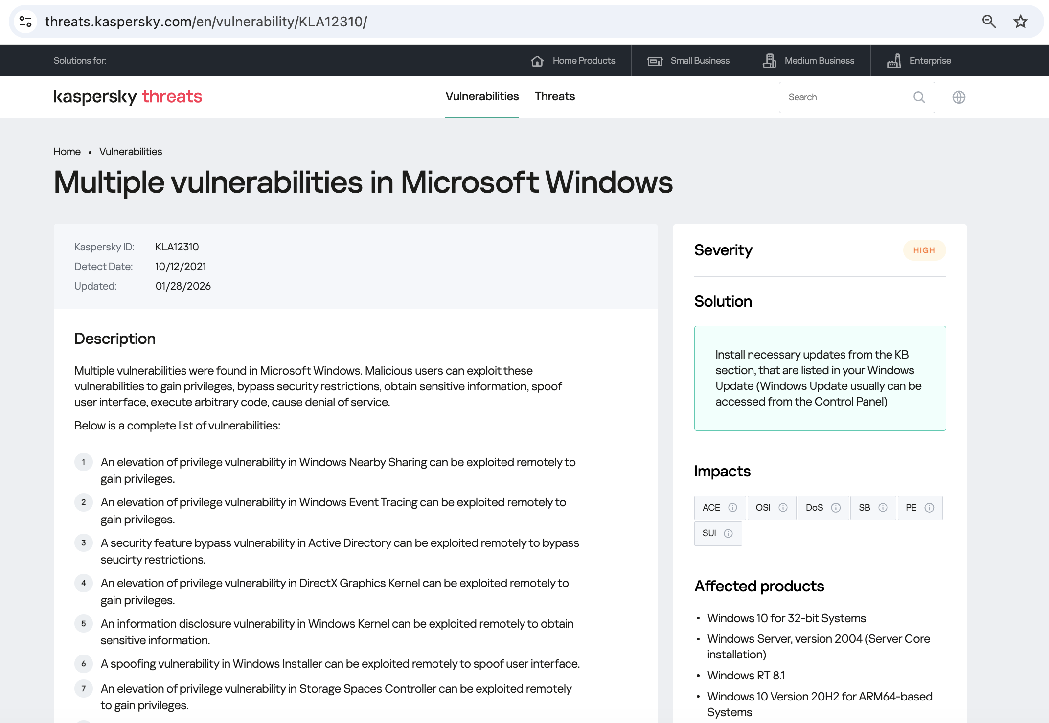 كما نرى، هي ثغرة من نوع تصعيد الامتيازات؛ وهذا يعني أنها تُستخدم بعد تمكن المخترقين بالفعل من التسلل إلى البنية التحتية. وتملك هذه الثغرة تصنيف خطورة مرتفع، ويتم استغلالها بكثافة في الواقع العملي. إذاً، ما البرامج المصابة بهذه الثغرة فعليًا؟