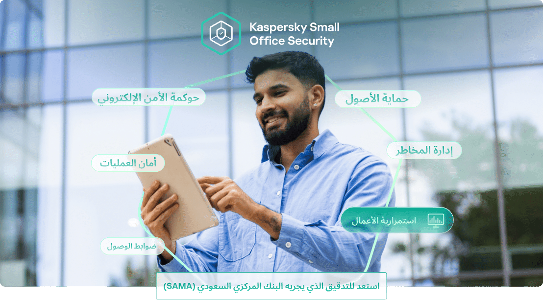 مع Kaspersky Small Office Security، أصبحت حماية عملك بسيطة. ويمكنك تأمين فريقك بالكامل، من الأجهزة المحمولة إلى أجهزة سطح المكتب، عن طريق حل واحد ذكي.